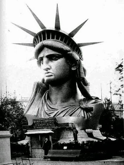 Το κεφάλι και το χέρι του αγάλματος είχαν κατασκευαστεί πριν να αναλάβει ο Άιφελ . Το 1878 ο κόσμος είδε το κεφάλι για πρώτη φορά σε μια έκθεση στο Παρίσι. Παρακάτω είναι φωτογραφίες της κεφαλής από την έκθεση το 1878.