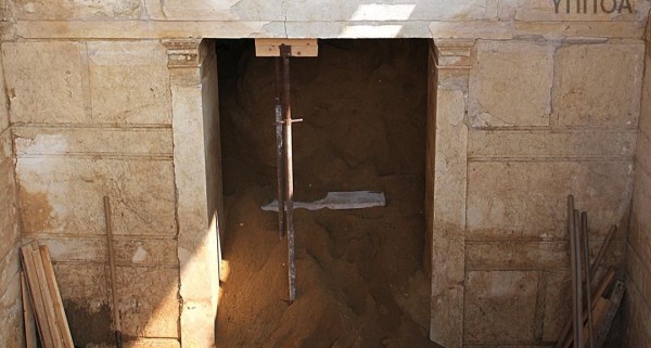 Επί του διαφραγματικού τοίχου αναμένεται να υπάρχει δεύτερη είσοδος που οδηγεί στο εσωτερικό του μνημείου. Τα χώματα του χώρου που δημιουργείται όπισθεν της θύρας, θα αφαιρεθούν στις επόμενες μέρες, εφόσον το επιτρέψουν οι εργασίες στερέωσης και συντήρησης στα σημεία, που έχουν αποκαλυφθεί.